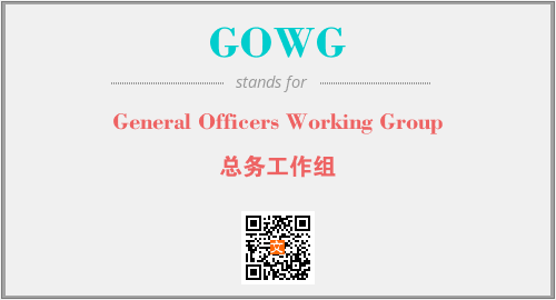 英文缩略词“GOWG”经常作为“General Officers Working Group”的英文缩写来使用,中文表示:“总务工作组”。本文将详细介绍英文缩写词GOWG所代表英文单词,其对应的中文拼音、详细解释以及在英语中的流行度。此外,还有关于缩略词GOWG的分类、应用领域及相关应用示例等。