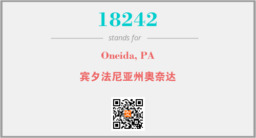 上述内容是“Oneida, PA”作为“18242”的缩写,解释为“宾夕法尼亚州奥奈达”时的信息,以及英文缩略词18242所代表的英文单词,其对应的中文拼音、详细解释以及在英文中的流行度和相关分类、应用领域及应用示例等。