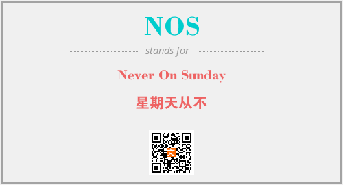上述内容是“Never On Sunday”作为“NOS”的缩写,解释为“星期天从不”时的信息,以及英文缩略词NOS所代表的英文单词,其对应的中文拼音、详细解释以及在英文中的流行度和相关分类、应用领域及应用示例等。