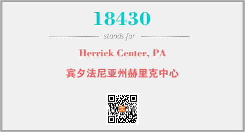 上述内容是“Herrick Center, PA”作为“18430”的缩写,解释为“宾夕法尼亚州赫里克中心”时的信息,以及英文缩略词18430所代表的英文单词,其对应的中文拼音、详细解释以及在英文中的流行度和相关分类、应用领域及应用示例等。