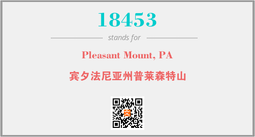 上述内容是“Pleasant Mount, PA”作为“18453”的缩写,解释为“宾夕法尼亚州普莱森特山”时的信息,以及英文缩略词18453所代表的英文单词,其对应的中文拼音、详细解释以及在英文中的流行度和相关分类、应用领域及应用示例等。