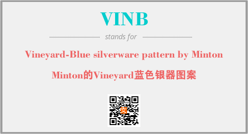 上述内容是“Vineyard-Blue silverware pattern by Minton”作为“VINB”的缩写,解释为“Minton的Vineyard蓝色银器图案”时的信息,以及英文缩略词VINB所代表的英文单词,其对应的中文拼音、详细解释以及在英文中的流行度和相关分类、应用领域及应用示例等。