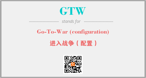 上述内容是“Go-To-War (configuration)”作为“GTW”的缩写,解释为“进入战争(配置)”时的信息,以及英文缩略词GTW所代表的英文单词,其对应的中文拼音、详细解释以及在英文中的流行度和相关分类、应用领域及应用示例等。