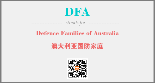 上述内容是“Defence Families of Australia”作为“DFA”的缩写,解释为“澳大利亚国防家庭”时的信息,以及英文缩略词DFA所代表的英文单词,其对应的中文拼音、详细解释以及在英文中的流行度和相关分类、应用领域及应用示例等。