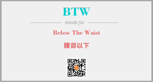 英文缩略词“BTW”经常作为“Below The Waist”的英文缩写来使用,中文表示:“腰部以下”。本文将详细介绍英文缩写词BTW所代表英文单词,其对应的中文拼音、详细解释以及在英语中的流行度。此外,还有关于缩略词BTW的分类、应用领域及相关应用示例等。
