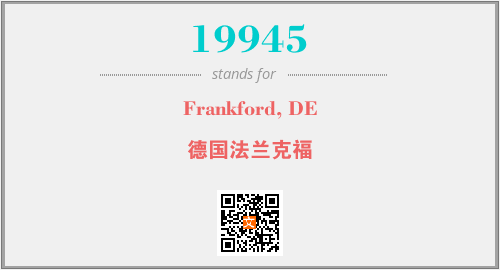 上述内容是“Frankford, DE”作为“19945”的缩写,解释为“德国法兰克福”时的信息,以及英文缩略词19945所代表的英文单词,其对应的中文拼音、详细解释以及在英文中的流行度和相关分类、应用领域及应用示例等。