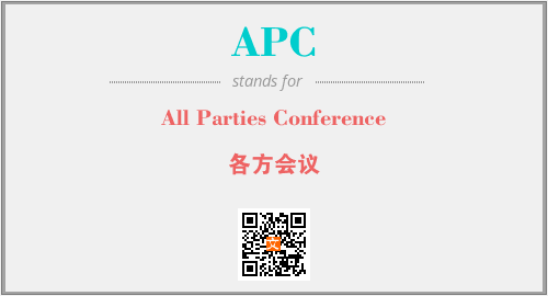 上述内容是“All Parties Conference”作为“APC”的缩写,解释为“各方会议”时的信息,以及英文缩略词APC所代表的英文单词,其对应的中文拼音、详细解释以及在英文中的流行度和相关分类、应用领域及应用示例等。