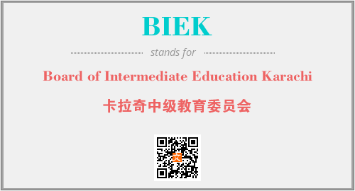 上述内容是“Board of Intermediate Education Karachi”作为“BIEK”的缩写,解释为“卡拉奇中级教育委员会”时的信息,以及英文缩略词BIEK所代表的英文单词,其对应的中文拼音、详细解释以及在英文中的流行度和相关分类、应用领域及应用示例等。