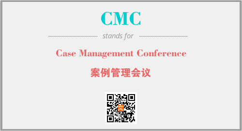 英文缩略词“CMC”经常作为“Case Management Conference”的英文缩写来使用,中文表示:“案例管理会议”。本文将详细介绍英文缩写词CMC所代表英文单词,其对应的中文拼音、详细解释以及在英语中的流行度。此外,还有关于缩略词CMC的分类、应用领域及相关应用示例等。