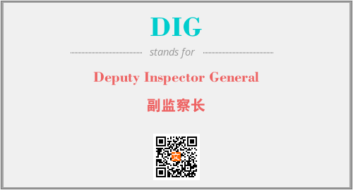 上述内容是“Deputy Inspector General”作为“DIG”的缩写,解释为“副监察长”时的信息,以及英文缩略词DIG所代表的英文单词,其对应的中文拼音、详细解释以及在英文中的流行度和相关分类、应用领域及应用示例等。