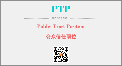 英文缩略词“PTP”经常作为“Public Trust Position”的英文缩写来使用,中文表示:“公众信任职位”。本文将详细介绍英文缩写词PTP所代表英文单词,其对应的中文拼音、详细解释以及在英语中的流行度。此外,还有关于缩略词PTP的分类、应用领域及相关应用示例等。