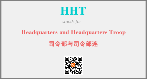上述内容是“Headquarters and Headquarters Troop”作为“HHT”的缩写,解释为“司令部与司令部连”时的信息,以及英文缩略词HHT所代表的英文单词,其对应的中文拼音、详细解释以及在英文中的流行度和相关分类、应用领域及应用示例等。