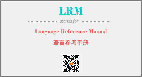 英文缩略词“LRM”经常作为“Language Reference Manual”的英文缩写来使用,中文表示:“语言参考手册”。本文将详细介绍英文缩写词LRM所代表英文单词,其对应的中文拼音、详细解释以及在英语中的流行度。此外,还有关于缩略词LRM的分类、应用领域及相关应用示例等。