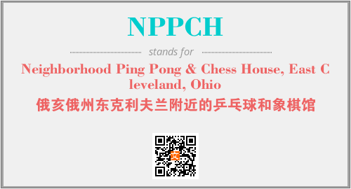 以上为Neighborhood Ping Pong & Chess House, East Cleveland, Ohio英文缩略词NPPCH的中文解释,以及该英文缩写在英语的流行度、分类和应用领域方面的信息。
