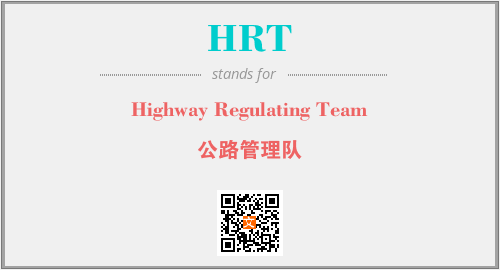 英文缩略词“HRT”经常作为“Highway Regulating Team”的英文缩写来使用,中文表示:“公路管理队”。本文将详细介绍英文缩写词HRT所代表英文单词,其对应的中文拼音、详细解释以及在英语中的流行度。此外,还有关于缩略词HRT的分类、应用领域及相关应用示例等。