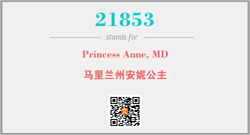 上述内容是“Princess Anne, MD”作为“21853”的缩写,解释为“马里兰州安妮公主”时的信息,以及英文缩略词21853所代表的英文单词,其对应的中文拼音、详细解释以及在英文中的流行度和相关分类、应用领域及应用示例等。