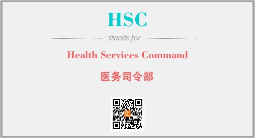 英文缩略词“HSC”经常作为“Health Services Command”的英文缩写来使用,中文表示:“医务司令部”。本文将详细介绍英文缩写词HSC所代表英文单词,其对应的中文拼音、详细解释以及在英语中的流行度。此外,还有关于缩略词HSC的分类、应用领域及相关应用示例等。