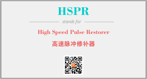 上述内容是“High Speed Pulse Restorer”作为“HSPR”的缩写,解释为“高速脉冲修补器”时的信息,以及英文缩略词HSPR所代表的英文单词,其对应的中文拼音、详细解释以及在英文中的流行度和相关分类、应用领域及应用示例等。