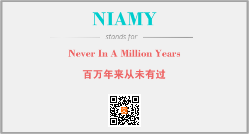 以上为Never In A Million Years英文缩略词NIAMY的中文解释,以及该英文缩写在英语的流行度、分类和应用领域方面的信息。