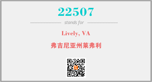 上述内容是“Lively, VA”作为“22507”的缩写,解释为“弗吉尼亚州莱弗利”时的信息,以及英文缩略词22507所代表的英文单词,其对应的中文拼音、详细解释以及在英文中的流行度和相关分类、应用领域及应用示例等。