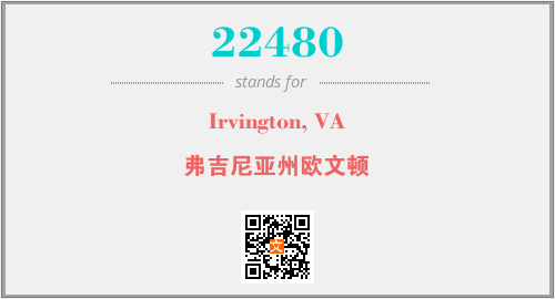 上述内容是“Irvington, VA”作为“22480”的缩写,解释为“弗吉尼亚州欧文顿”时的信息,以及英文缩略词22480所代表的英文单词,其对应的中文拼音、详细解释以及在英文中的流行度和相关分类、应用领域及应用示例等。