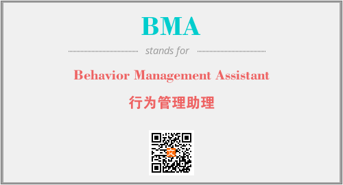 上述内容是“Behavior Management Assistant”作为“BMA”的缩写,解释为“行为管理助理”时的信息,以及英文缩略词BMA所代表的英文单词,其对应的中文拼音、详细解释以及在英文中的流行度和相关分类、应用领域及应用示例等。