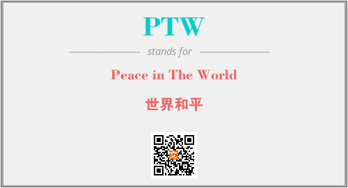 英文缩略词“PTW”经常作为“Peace in The World”的英文缩写来使用,中文表示:“世界和平”。本文将详细介绍英文缩写词PTW所代表英文单词,其对应的中文拼音、详细解释以及在英语中的流行度。此外,还有关于缩略词PTW的分类、应用领域及相关应用示例等。