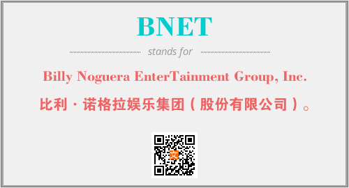 上述内容是“Billy Noguera EnterTainment Group, Inc.”作为“BNET”的缩写,解释为“比利·诺格拉娱乐集团(股份有限公司)。”时的信息,以及英文缩略词BNET所代表的英文单词,其对应的中文拼音、详细解释以及在英文中的流行度和相关分类、应用领域及应用示例等。