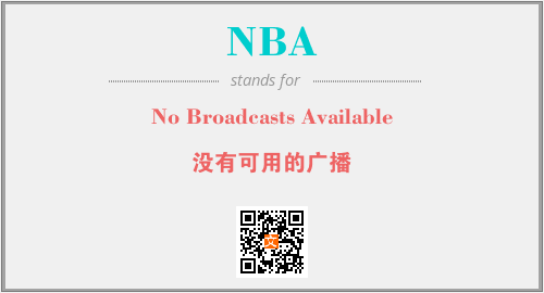 英文缩略词“NBA”经常作为“No Broadcasts Available”的英文缩写来使用,中文表示:“没有可用的广播”。本文将详细介绍英文缩写词NBA所代表英文单词,其对应的中文拼音、详细解释以及在英语中的流行度。此外,还有关于缩略词NBA的分类、应用领域及相关应用示例等。