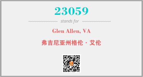 上述内容是“Glen Allen, VA”作为“23059”的缩写,解释为“弗吉尼亚州格伦·艾伦”时的信息,以及英文缩略词23059所代表的英文单词,其对应的中文拼音、详细解释以及在英文中的流行度和相关分类、应用领域及应用示例等。