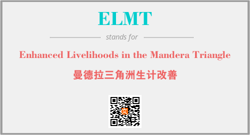 上述内容是“Enhanced Livelihoods in the Mandera Triangle”作为“ELMT”的缩写,解释为“曼德拉三角洲生计改善”时的信息,以及英文缩略词ELMT所代表的英文单词,其对应的中文拼音、详细解释以及在英文中的流行度和相关分类、应用领域及应用示例等。