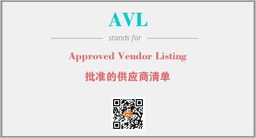 英文缩略词“AVL”经常作为“Approved Vendor Listing”的英文缩写来使用,中文表示:“批准的供应商清单”。本文将详细介绍英文缩写词AVL所代表英文单词,其对应的中文拼音、详细解释以及在英语中的流行度。此外,还有关于缩略词AVL的分类、应用领域及相关应用示例等。