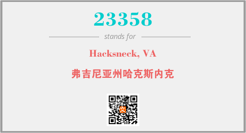 上述内容是“Hacksneck, VA”作为“23358”的缩写,解释为“弗吉尼亚州哈克斯内克”时的信息,以及英文缩略词23358所代表的英文单词,其对应的中文拼音、详细解释以及在英文中的流行度和相关分类、应用领域及应用示例等。