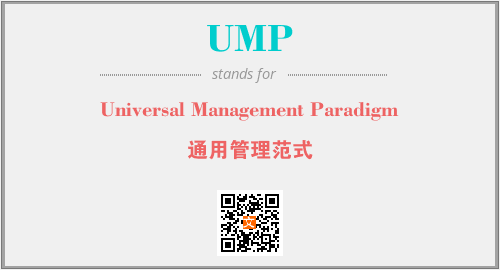 上述内容是“Universal Management Paradigm”作为“UMP”的缩写,解释为“通用管理范式”时的信息,以及英文缩略词UMP所代表的英文单词,其对应的中文拼音、详细解释以及在英文中的流行度和相关分类、应用领域及应用示例等。