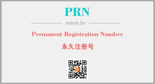 上述内容是“Permanent Registration Number”作为“PRN”的缩写,解释为“永久注册号”时的信息,以及英文缩略词PRN所代表的英文单词,其对应的中文拼音、详细解释以及在英文中的流行度和相关分类、应用领域及应用示例等。