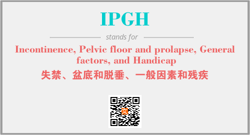 上述内容是“Incontinence, Pelvic floor and prolapse, General factors, and Handicap”作为“IPGH”的缩写,解释为“失禁、盆底和脱垂、一般因素和残疾”时的信息,以及英文缩略词IPGH所代表的英文单词,其对应的中文拼音、详细解释以及在英文中的流行度和相关分类、应用领域及应用示例等。