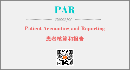 英文缩略词“PAR”经常作为“Patient Accounting and Reporting”的英文缩写来使用,中文表示:“患者核算和报告”。本文将详细介绍英文缩写词PAR所代表英文单词,其对应的中文拼音、详细解释以及在英语中的流行度。此外,还有关于缩略词PAR的分类、应用领域及相关应用示例等。