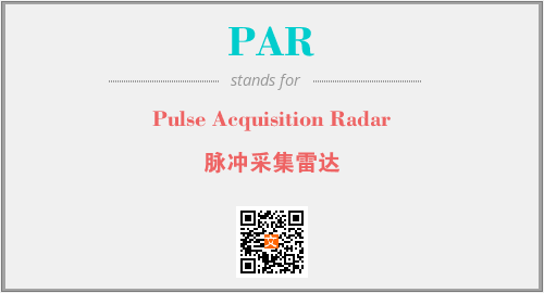 上述内容是“Pulse Acquisition Radar”作为“PAR”的缩写,解释为“脉冲采集雷达”时的信息,以及英文缩略词PAR所代表的英文单词,其对应的中文拼音、详细解释以及在英文中的流行度和相关分类、应用领域及应用示例等。