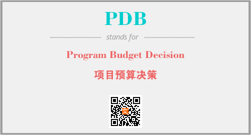上述内容是“Program Budget Decision”作为“PDB”的缩写,解释为“项目预算决策”时的信息,以及英文缩略词PDB所代表的英文单词,其对应的中文拼音、详细解释以及在英文中的流行度和相关分类、应用领域及应用示例等。