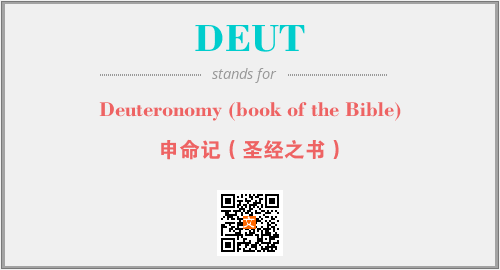 英文缩略词“DEUT”经常作为“Deuteronomy (book of the Bible)”的英文缩写来使用,中文表示:“申命记(圣经之书)”。本文将详细介绍英文缩写词DEUT所代表英文单词,其对应的中文拼音、详细解释以及在英语中的流行度。此外,还有关于缩略词DEUT的分类、应用领域及相关应用示例等。
