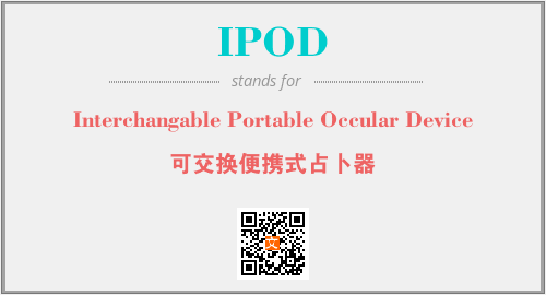 上述内容是“Interchangable Portable Occular Device”作为“IPOD”的缩写,解释为“可交换便携式占卜器”时的信息,以及英文缩略词IPOD所代表的英文单词,其对应的中文拼音、详细解释以及在英文中的流行度和相关分类、应用领域及应用示例等。