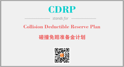 上述内容是“Collision Deductible Reserve Plan”作为“CDRP”的缩写,解释为“碰撞免赔准备金计划”时的信息,以及英文缩略词CDRP所代表的英文单词,其对应的中文拼音、详细解释以及在英文中的流行度和相关分类、应用领域及应用示例等。