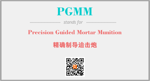英文缩略词“PGMM”经常作为“Precision Guided Mortar Munition”的英文缩写来使用,中文表示:“精确制导迫击炮”。本文将详细介绍英文缩写词PGMM所代表英文单词,其对应的中文拼音、详细解释以及在英语中的流行度。此外,还有关于缩略词PGMM的分类、应用领域及相关应用示例等。