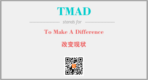 上述内容是“To Make A Difference”作为“TMAD”的缩写,解释为“改变现状”时的信息,以及英文缩略词TMAD所代表的英文单词,其对应的中文拼音、详细解释以及在英文中的流行度和相关分类、应用领域及应用示例等。