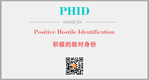 上述内容是“Positive Hostile Identification”作为“PHID”的缩写,解释为“积极的敌对身份”时的信息,以及英文缩略词PHID所代表的英文单词,其对应的中文拼音、详细解释以及在英文中的流行度和相关分类、应用领域及应用示例等。