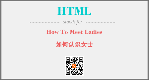 英文缩略词“HTML”经常作为“How To Meet Ladies”的英文缩写来使用,中文表示:“如何认识女士”。本文将详细介绍英文缩写词HTML所代表英文单词,其对应的中文拼音、详细解释以及在英语中的流行度。此外,还有关于缩略词HTML的分类、应用领域及相关应用示例等。