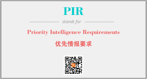 英文缩略词“PIR”经常作为“Priority Intelligence Requirements”的英文缩写来使用,中文表示:“优先情报要求”。本文将详细介绍英文缩写词PIR所代表英文单词,其对应的中文拼音、详细解释以及在英语中的流行度。此外,还有关于缩略词PIR的分类、应用领域及相关应用示例等。