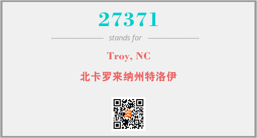 上述内容是“Troy, NC”作为“27371”的缩写,解释为“北卡罗来纳州特洛伊”时的信息,以及英文缩略词27371所代表的英文单词,其对应的中文拼音、详细解释以及在英文中的流行度和相关分类、应用领域及应用示例等。
