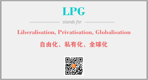 上述内容是“Liberalisation, Privatisation, Globalisation”作为“LPG”的缩写,解释为“自由化、私有化、全球化”时的信息,以及英文缩略词LPG所代表的英文单词,其对应的中文拼音、详细解释以及在英文中的流行度和相关分类、应用领域及应用示例等。