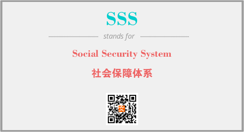 上述内容是“Social Security System”作为“SSS”的缩写,解释为“社会保障体系”时的信息,以及英文缩略词SSS所代表的英文单词,其对应的中文拼音、详细解释以及在英文中的流行度和相关分类、应用领域及应用示例等。